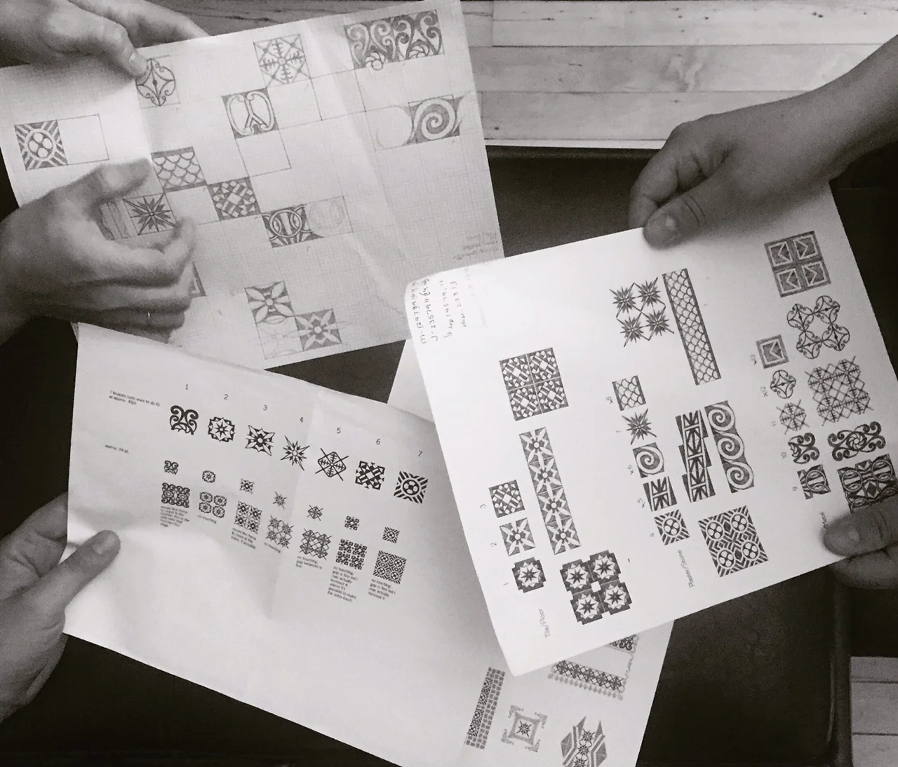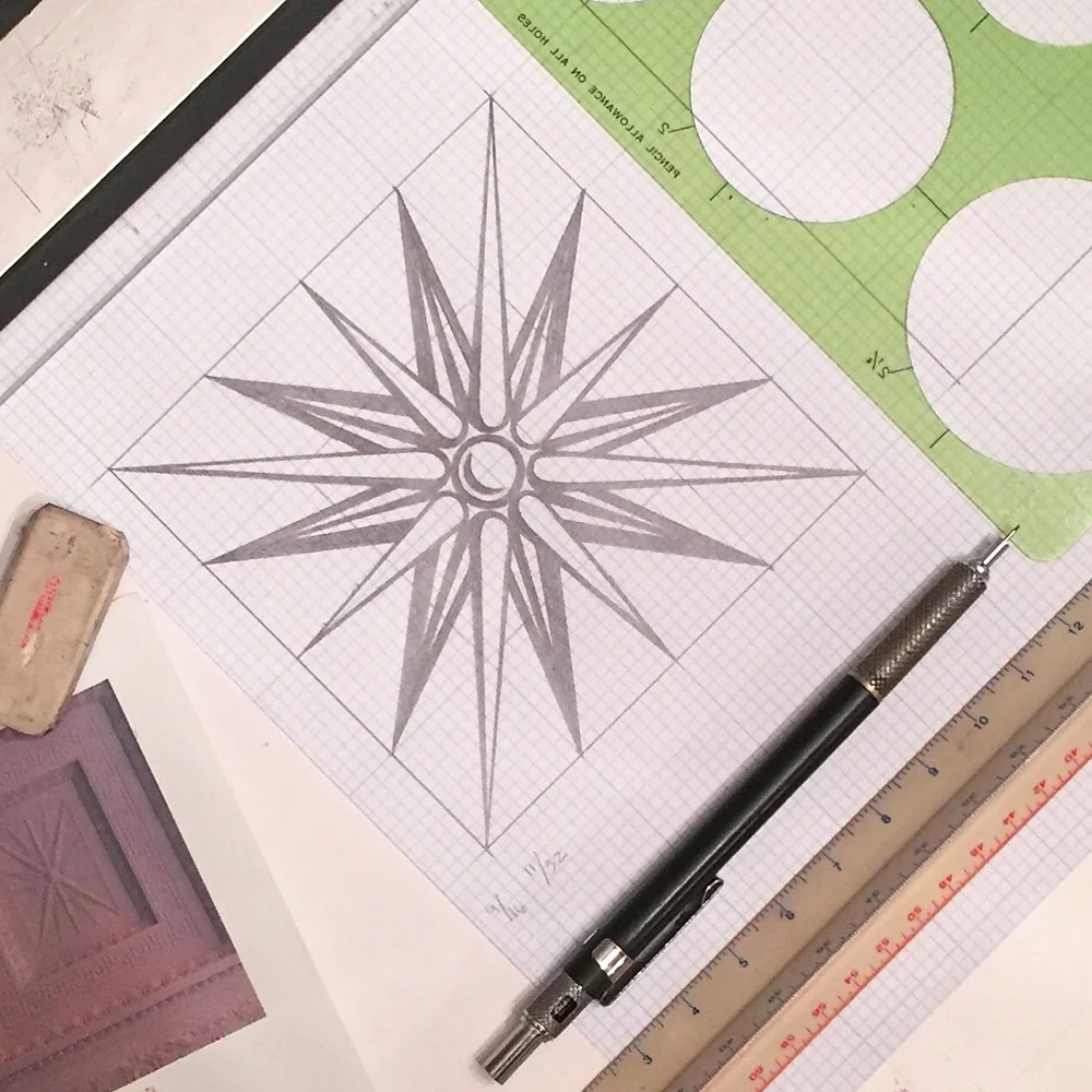 Creating angles seems like an easy enough task with metal type but not if they veer from 45º or if each image contains more than one set of angles. I attempted basic starter sketches of each girl on grid paper to look for common angles and to begin seeing how the simplest metal sorts could fill the space. I had to be mindful of what areas would be 'black' and what would be 'white,' leaving this a little up in the air as I had a sense these ladies needed to be printed on black paper.