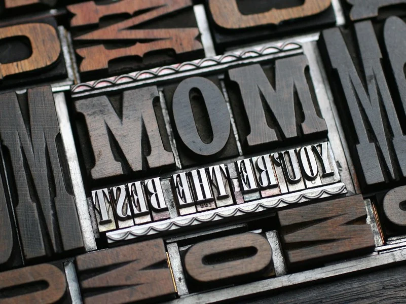 You know it, and I know it. Mom is the best. And you can let her know you mean it with this cheery card. We created a pattern of M's and O's from our vintage wood type and printed them to take advantage of the great shapes made when overprinting two light ink colors. The type is printed in watermelon and pale sage, with the text in gray. The card stock is a heavy off white paper with muted grayish-green envelopes, and measures 4.25x5.5". Comes packaged in a clear sleeve.